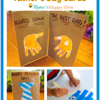 Little Bee and I enjoyed creating these toddler hand-made Father’s Day cards. They were fun to put together with simple craft materials and finger paints found around our kid-friendly home. List of Materials Needed: Thick Card Stock Paper – green, blue, brown, white Finger Paints – orange, yellow, white Scissors Magic Marker – Brown Painter’s Tape and Regular Tape Laminating…