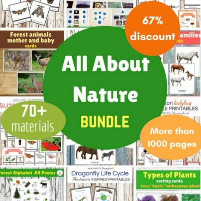 All About Nature Bundle What is this bundle? “All about nature bundle” is an organized collection of educational materials for teaching children about the natural world. The materials are carefully prepared and chosen so you can use them during the whole year. What is inside? It includes more than 70 printables. The whole bundle is divided into 3 sections: zoology,…