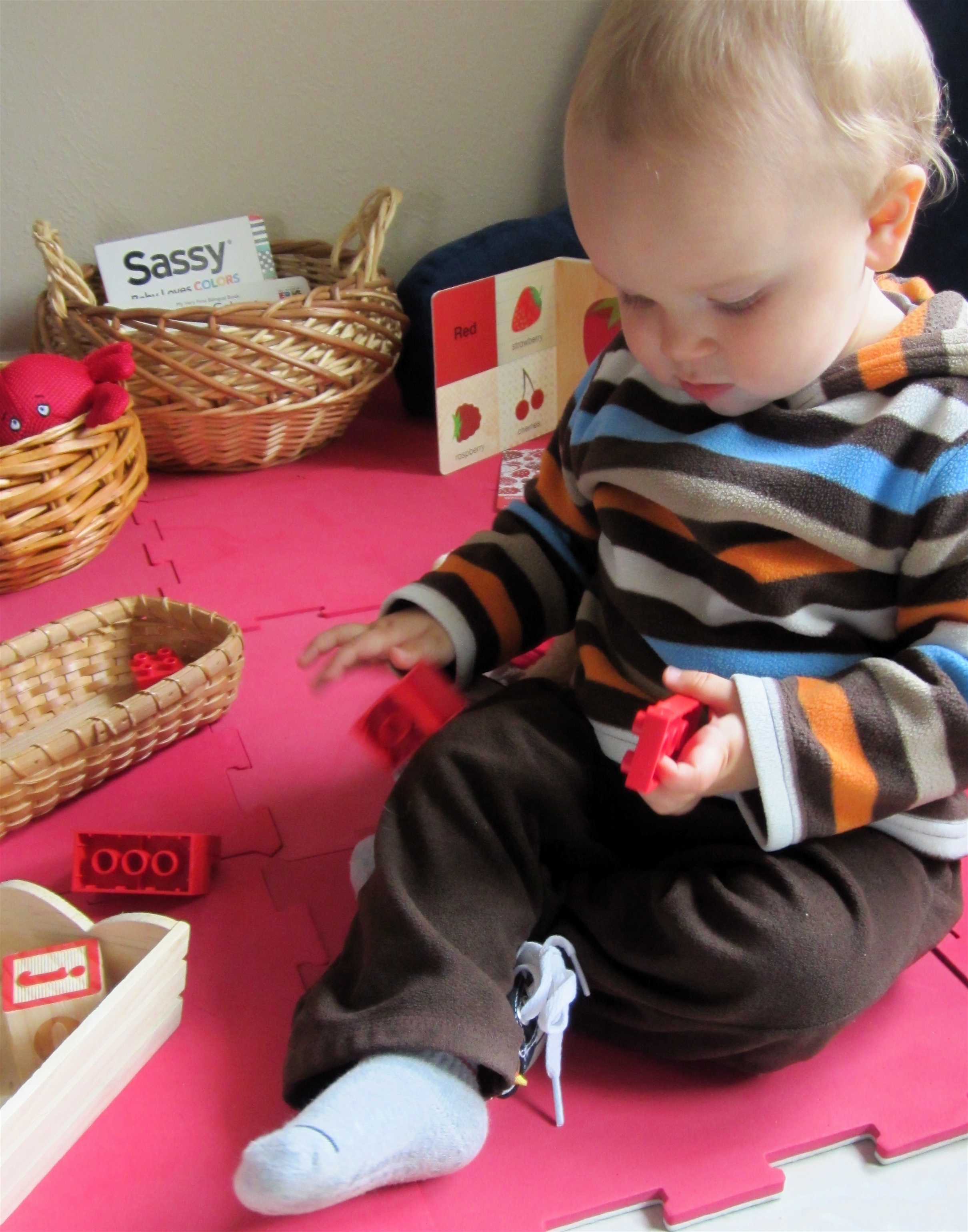 This is our Montessori Study of Red. I decided to transform our previous “organized” play space into a more Montessori…