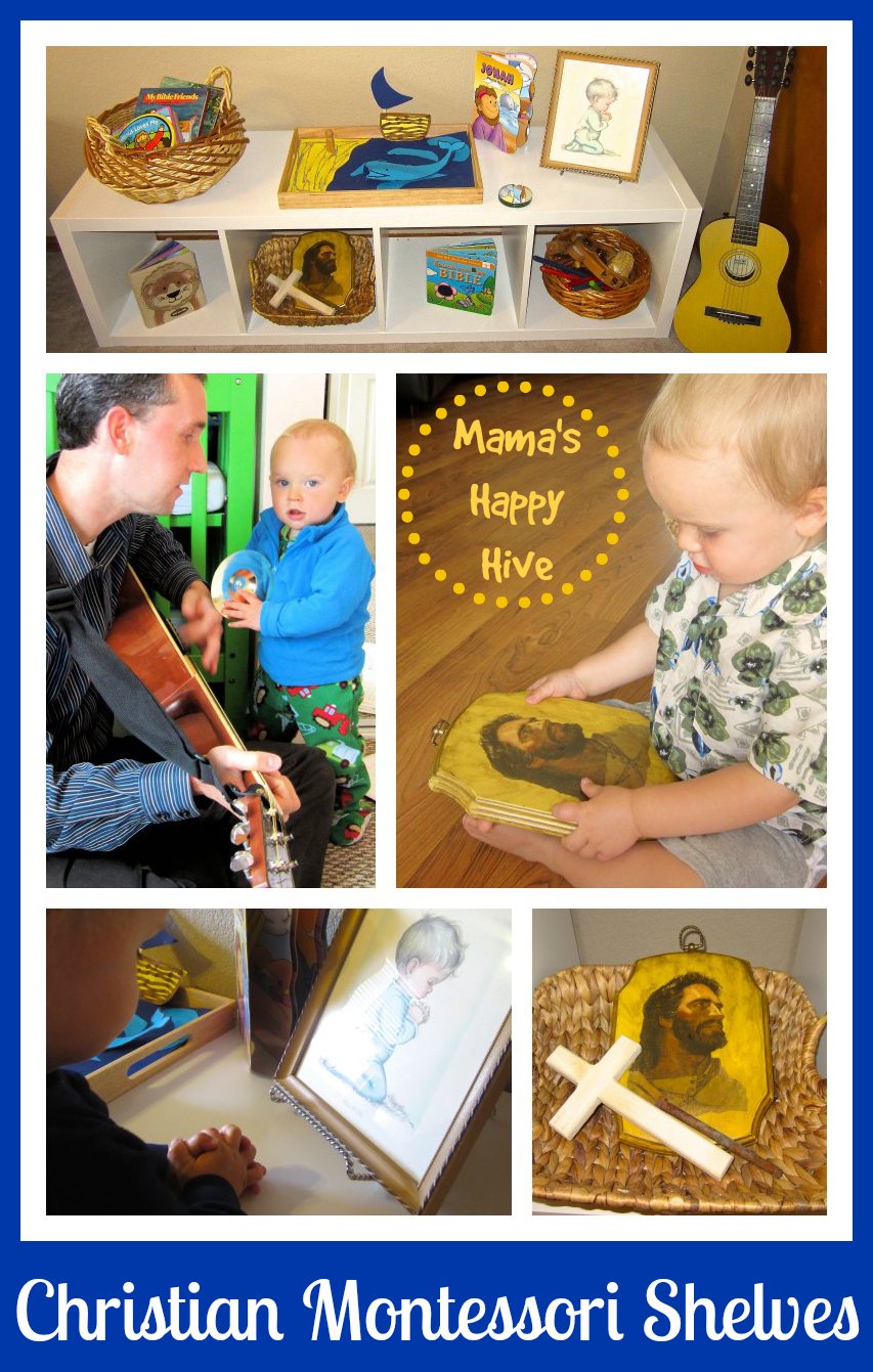 Our family enjoys using these beautiful Christian Montessori Shelves every morning for worship time before Daddy goes off to work for the day. We start our worship with several kid friendly songs, pray, read a couple Bible stories, and then pray again. Daddy and I make the worship experience tot friendly with hands on props and action songs. This is my favorite time of day.