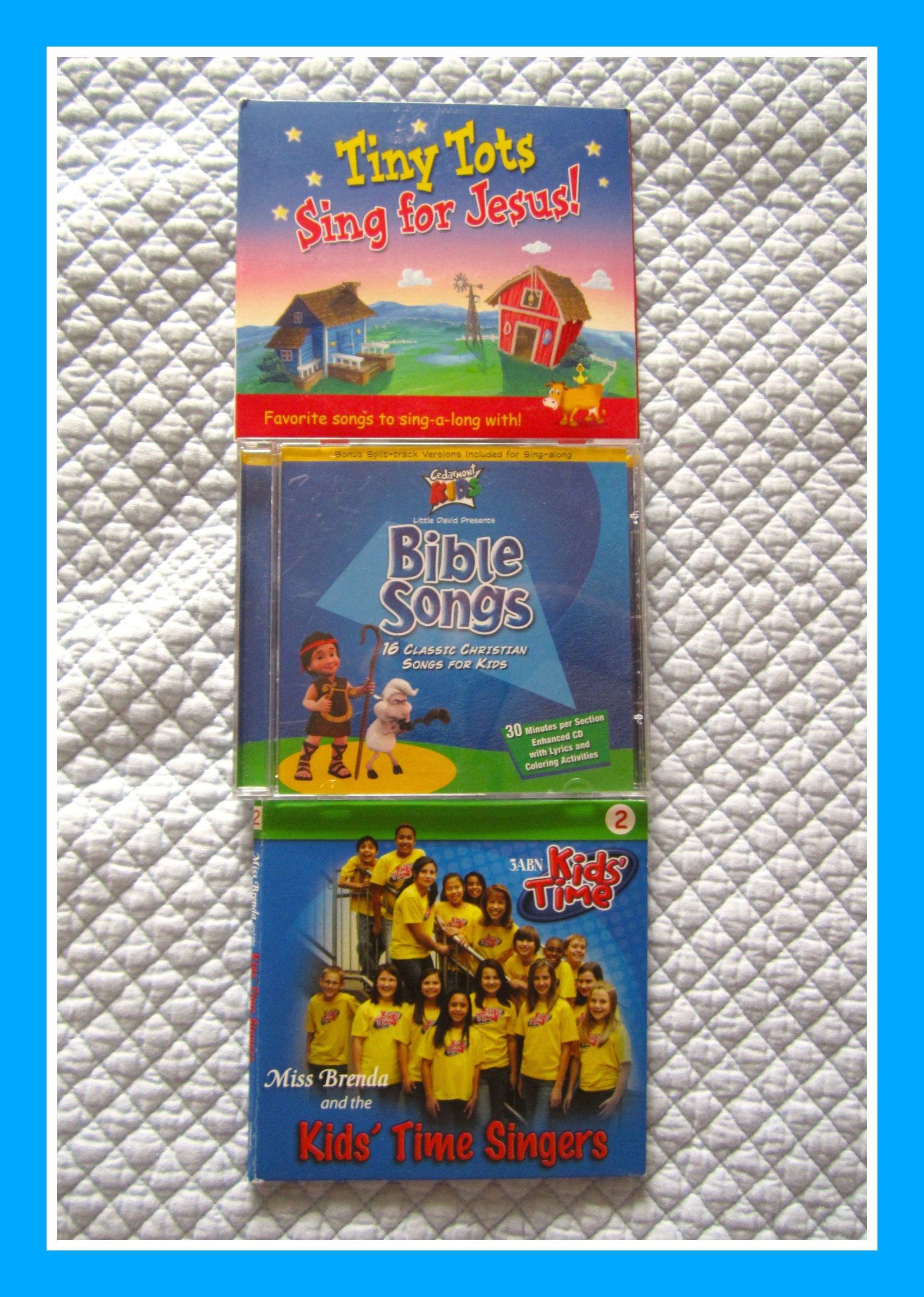 Some of our favorite songs that we sing with Little Bee can be found on these CD's. Shown below is Tiny Tots Sing for Jesus!, Bible Songs, and Kids Time Singers.