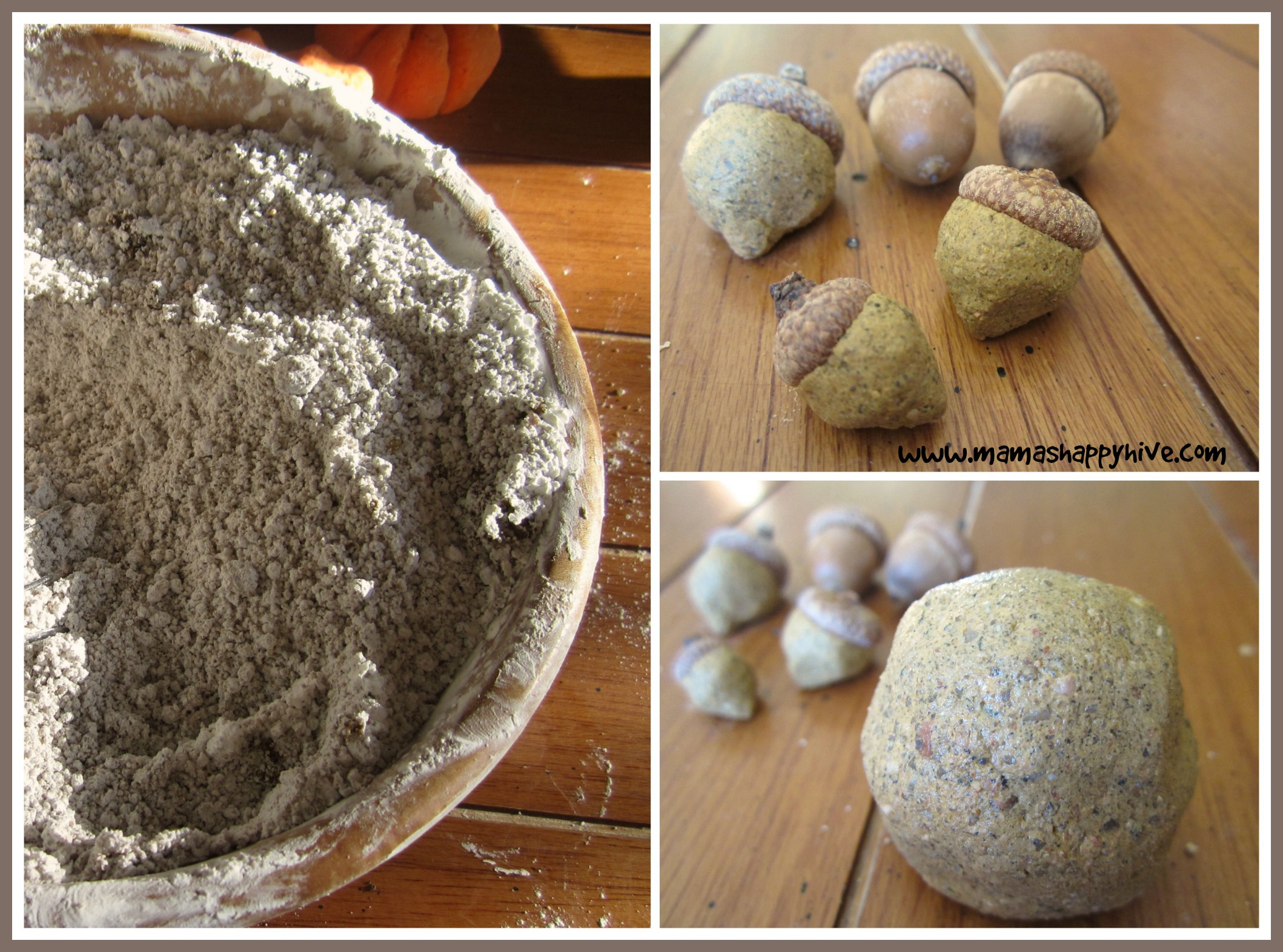 I had a blast making the pumpkins and the little acorns with real acorn caps. Little Bee is not old enough yet to mold these creations, however, I am sure he found his own beauty in the play dough creations he made all my himself.