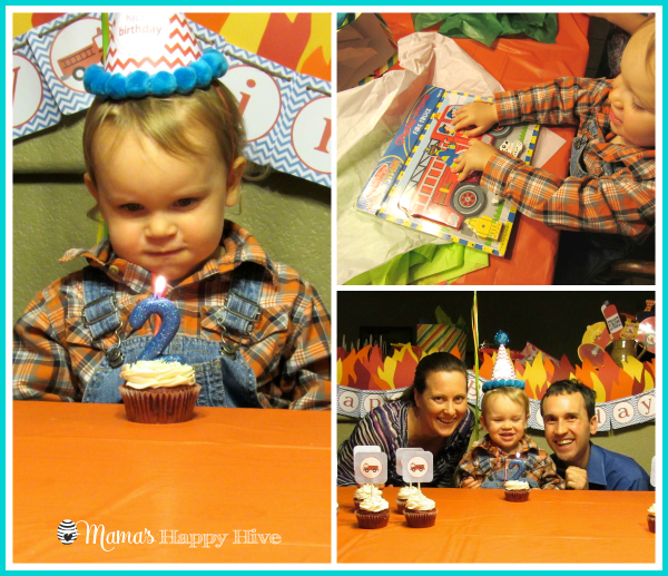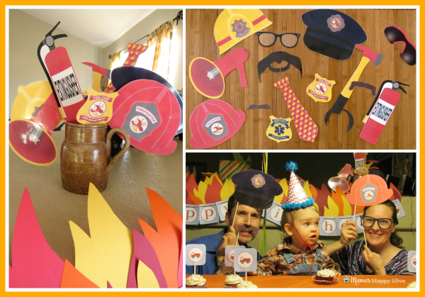 These fun photo prop fireman printables were found at the PaperBuiltShop on Etsy. All the guests who came to the party had fun lining up for a photo opportunity with these silly props. Even Mom and Dad got in on the fun with our little birthday boy!