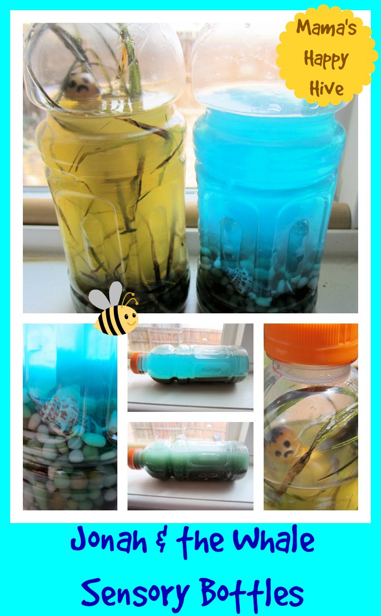Loved the sad face you put on Jonah – you are so creative with the sea rocks in the blue gatorade bottle! These learning toys provide a real, tactile guide to learning the Jonah story.