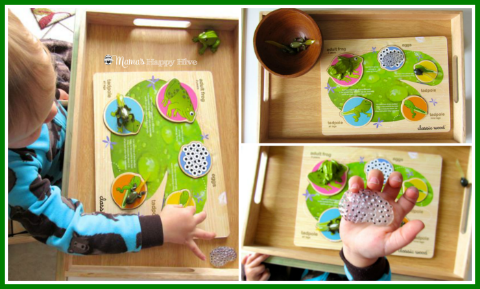 The tactile stimulation of handling the various pieces of the frog's life-cycle, helped Little Bee to grasp the different phases of the frog's life.