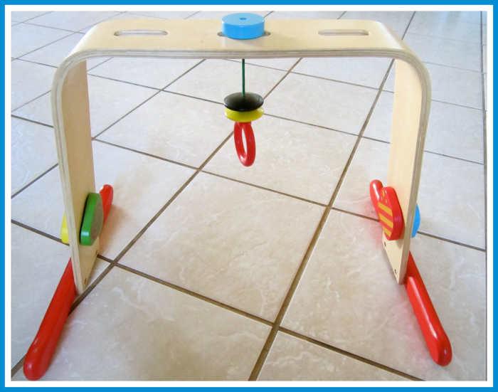 The baby play gym (*similar toy) pictured above, I bought at IKEA. I give this toy 5 stars! Both Little Bee and I enjoyed this toy. The hanging parts can be removed to simplify the toy. The shapes on the side of the toy spin. Little Bee was able to spin the shapes at one month of age! I was very impressed. Good memories!