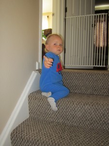 Little Bee can climb up and down the stairs on his own. He likes to have his independence and doesn't want to be carried. He wakes up hungry and knows where the food is located. He makes a beeline for the fridge! 🙂