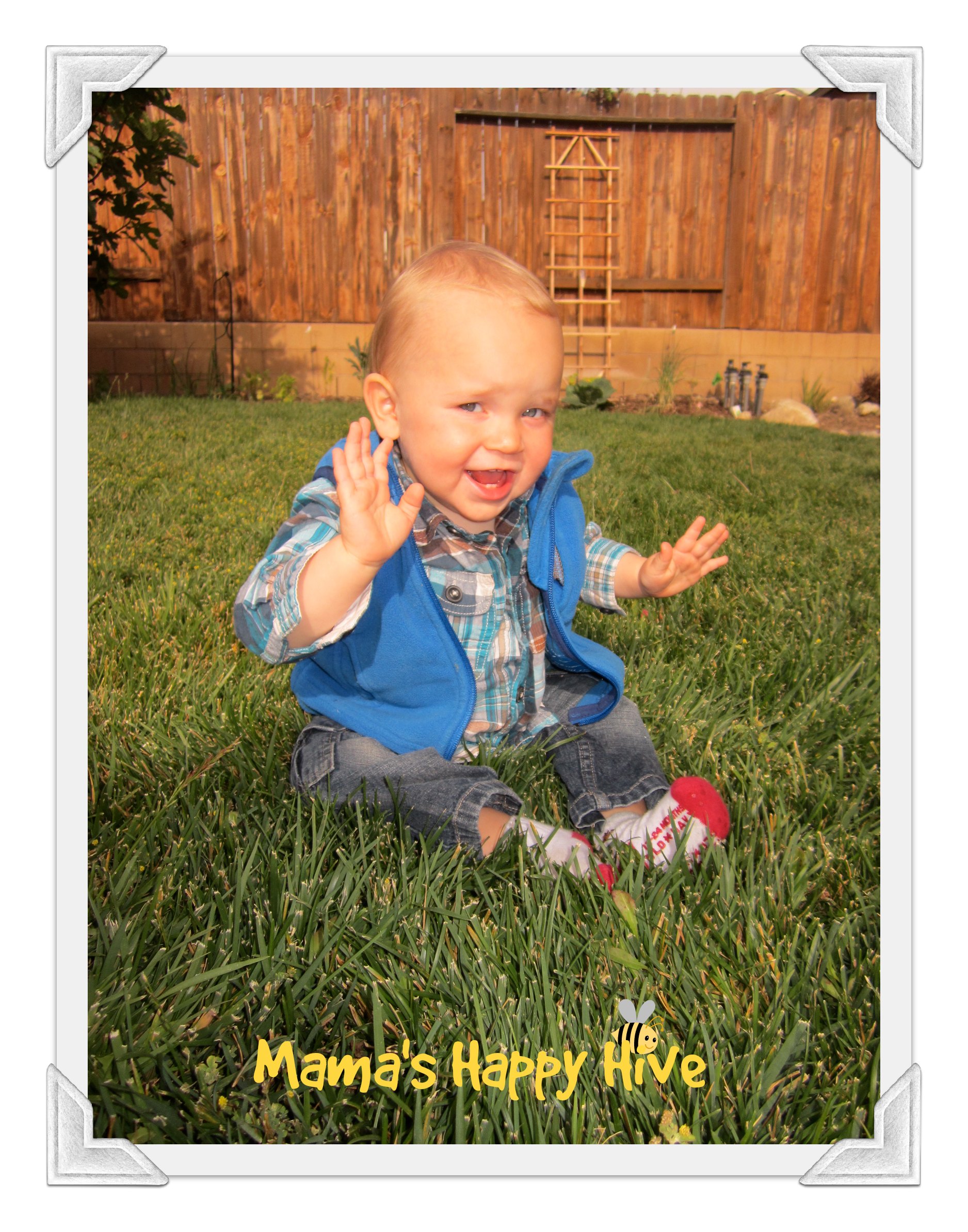 All afternoon, Little Bee finds fun stuff to do all over the house. Lately, he has been practicing his walking skills while holding something in his arms. This is a new challenge for Little Bee! He also likes to hold onto an object and climb the stairs. Somehow, this carrying challenge makes it more enjoyable for Little Bee. On the nice sunny days, we take a walk to the park. Little Bee loves to play in the grass and swing on the swings.