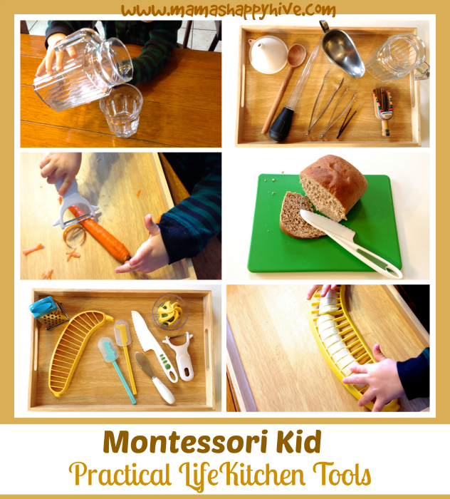 The Montessori subject that I love the most, at this time in my child's life, is practical life skills. It is a joy to see my child explore pouring activities, transfer activities, cutting his own banana, and setting the table with wonder. We both are enjoying this toddler stage in life so much. Below you will find listed 6 practical life skills kitchen activities that Little Bee practices almost every day in our home.