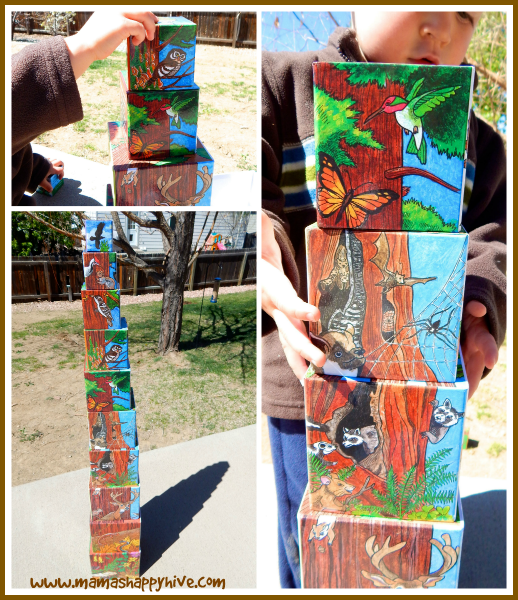 We have a similar set of those cubes, but not with the cool sides like yours! I need to haul that back out. And I love the forest animal sensory box. We need to buy a few more animal sets. Have any favorite ones?